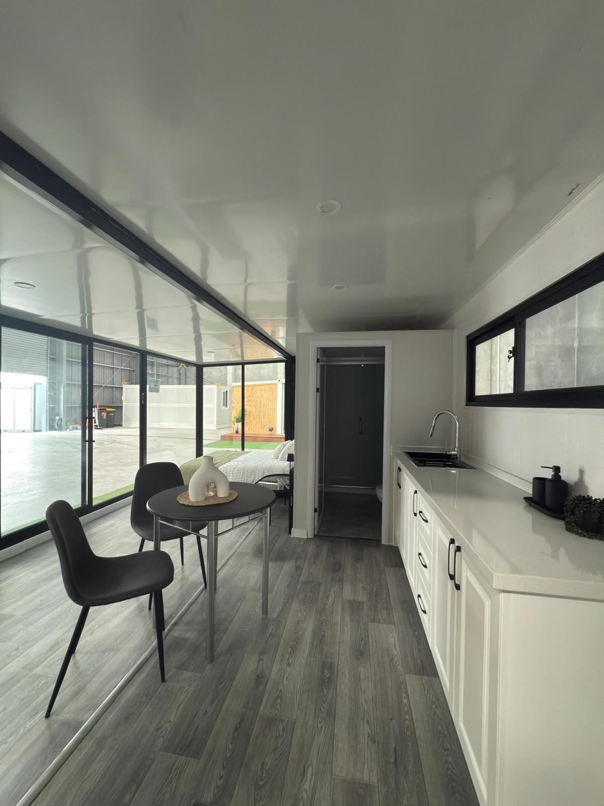 Each Tiny Homes arrives 80% complete, featuring pre-installed plumbing and wiring, along with a fully finished bathroom and kitchen—ready for you to enjoy with ease.
