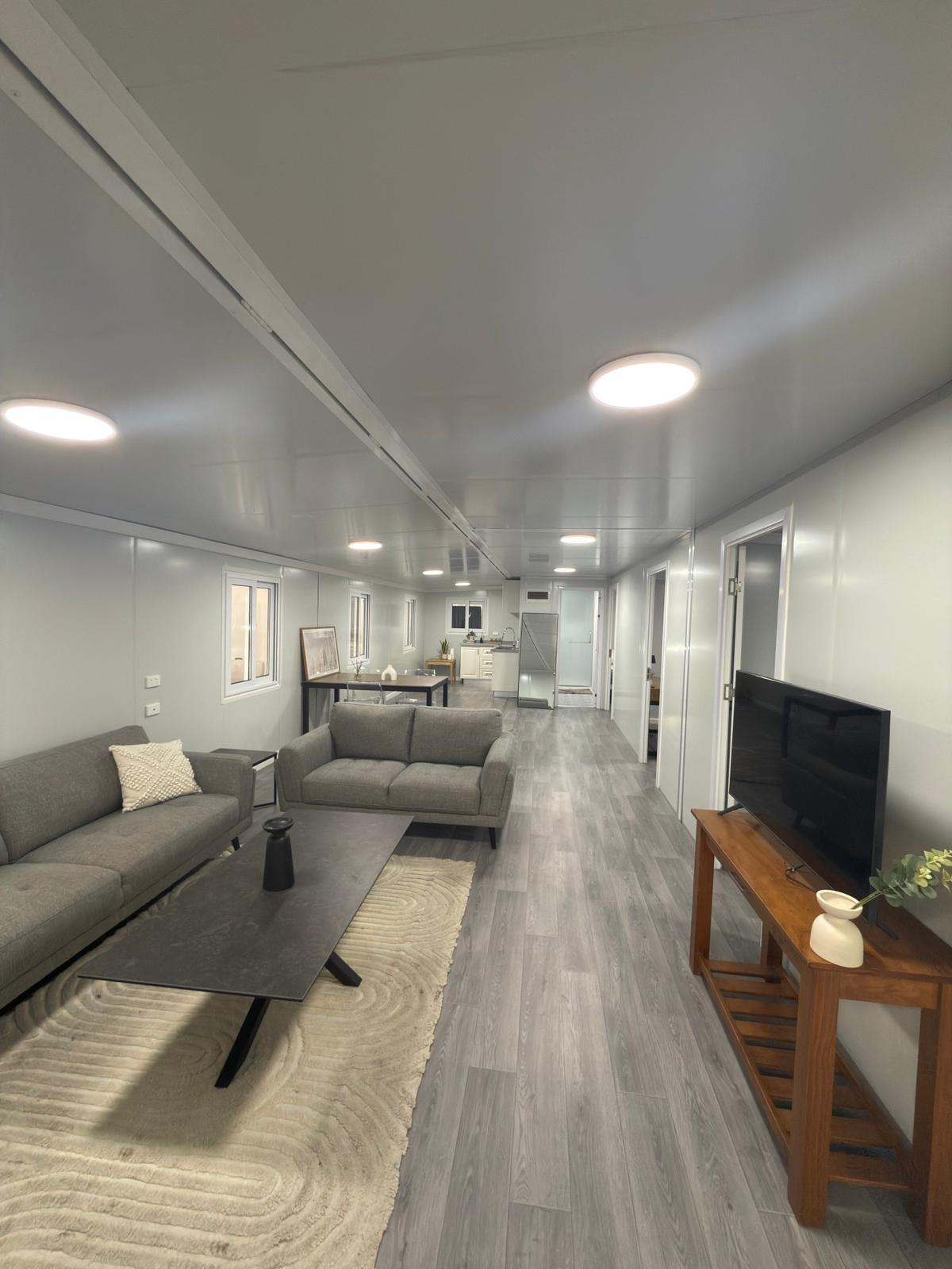 Enjoy our 20ft Modular Cabins – everything you need in a compact, comfortable home! With two cosy bedrooms, a smart toilet setup with separate wet and dry shower areas, and a spacious living room, it's perfect for small families, couples, or anyone needing extra space. Built tough with customisable colour steel exterior panels, and for first-time customers, we’re including a free water heater. Affordable, practical, and ready to go - the ideal choice for those who want comfort wherever they are.